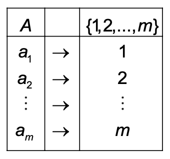 A function is a bijection if it is both one-to-one and also onto. That is, is a bijection if every element is mapped to by exactly one element in .