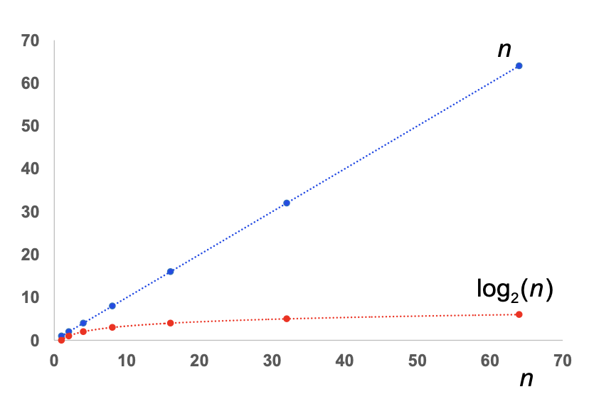 Also, although we tend to use when discussing complexity, an algorithm which scales logarithmically with the input value does so whatever the base of the logarithm. This is because . and are just constants.