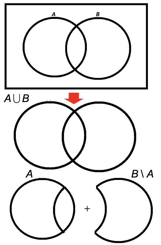 Consider a case where instead of picking one item from one set and one item from another, we need to pick one item either set or set , but not both. For simplicity, initially assume that the two sets are disjoint, that is that every element in is not in and vice versa. We then have ways to pick an element from and ways to pick an element from . This therefore gives us ways to pick one element from either or . This, however assumes that and are disjoint.