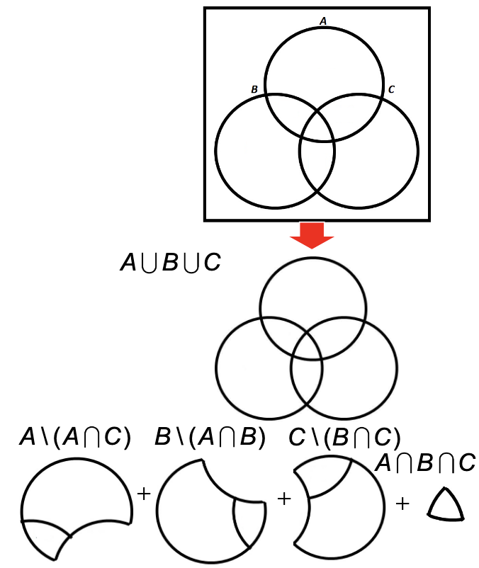 Let and be sets which may or may not be disjoint. The number of element in either or (or both) is equal to the sum of the number of elements in and the number of elements in minus the number in both.