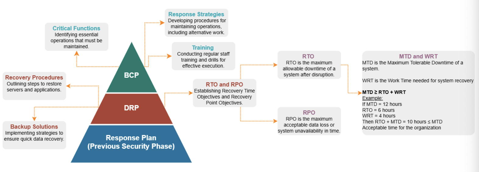 - disaster recovery plan (drp) - subset of bcp, specifically addresses the recovery of IT systems; detailed roadmap for restoring business functionalities with min. threat impact; follow-on steps to learn/adapt/prevent disaster from happening again